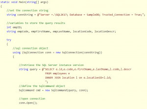 Each major block should have a short note about why it exists. There is a little more here. Within a SQL command, do not use –comment, use /* comment*/