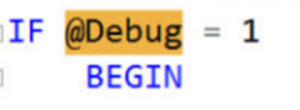 Start with @v_debug. Later in the code, use IF @Debug = 1 with PRINT and even to temp tables to log the results as you go. My start on this was from my oracle database days. I like to include this in all my production codes. But Brent Ozar explains this well in Quick Tips For Debugging Large Stored Procedures – Brent Ozar Unlimited® post.