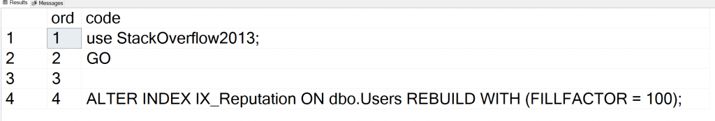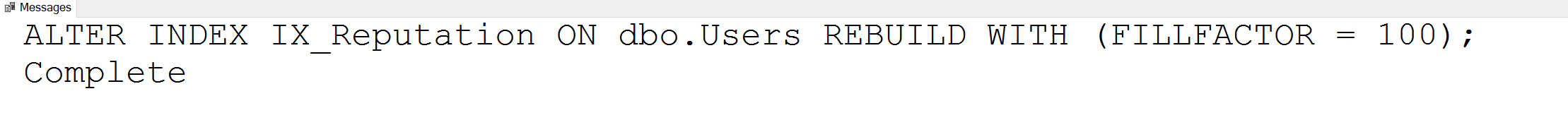 ALTER INDEX IX_Reputation ON dbo.Users REBUILD WITH (FILLFACTOR = 100);
