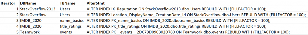 I ran it on a database, with the command checking for <100% instead of <=80%. Yes, this gives me all indexes, but I am only testing, and here are the results: